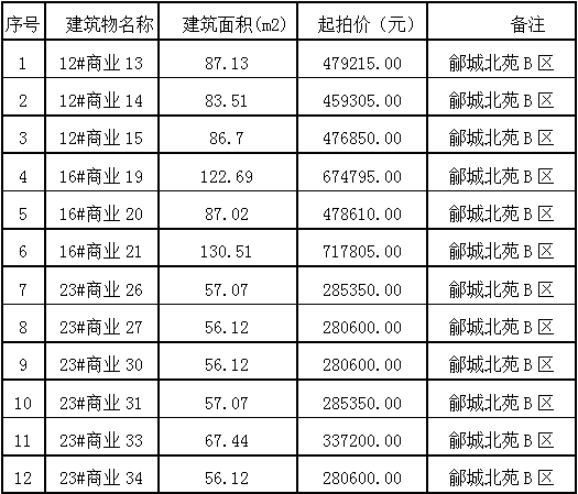 1月10日夏津縣鄃城北苑商業(yè)房、夏津高莊新村小區(qū)商品房、輔助用房車庫(kù)、鄃城新苑A區(qū)G3號(hào)樓三層房產(chǎn)租賃權(quán)拍賣(mài)公告