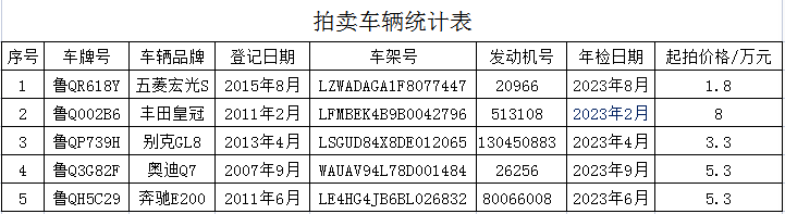 1月17日臨沂奔馳、豐田等五輛車拍賣(mài)公告