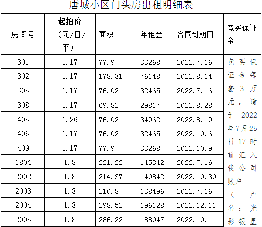 7月26日唐冶唐城小區(qū)商鋪?zhàn)赓U權(quán)拍賣公告