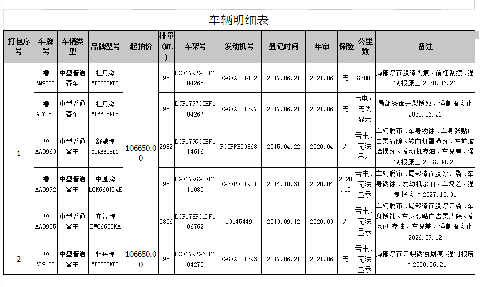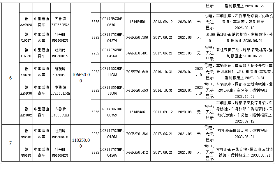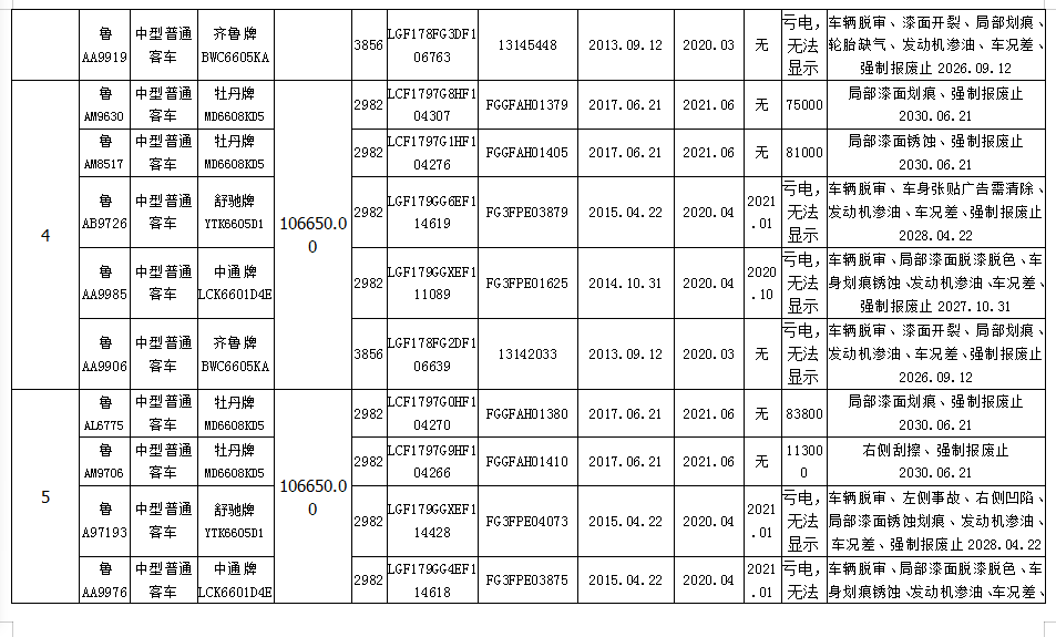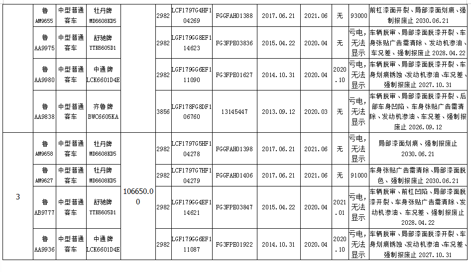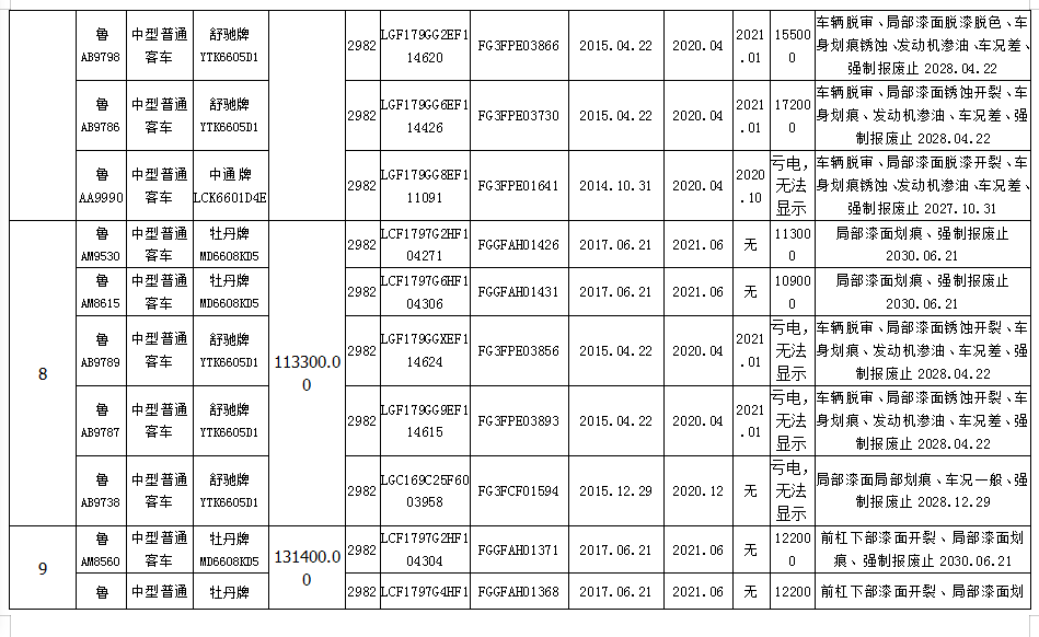 我公司定于2020年10月28日10:00在中拍平臺(http://paimai.caa123.org.cn)拍賣中型普通客車11個包,品牌有齊魯、舒馳、中通、牡丹,共計55輛,每包保證金5萬元。